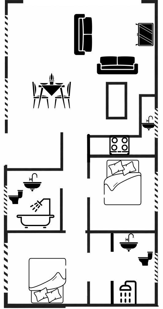 The Sovereign Lodge offers an impressive footprint of 45 ft by 20 ft, providing generous space for comfortable, high-end living. Designed with flexibility in mind, the lodge can accommodate two to three well-proportioned bedrooms, making it ideal for families, guests, or multi-generational stays. The internal layout is fully adaptable, allowing owners to tailor the configuration to suit their lifestyle — whether prioritising additional sleeping space, a larger master suite, a home office, or expanded living areas.