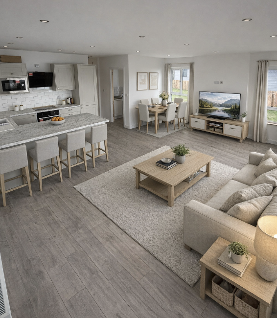 The Imperial Lodge offers an elegant lakeside retreat with uninterrupted views across tranquil waters and surrounding woodland, creating a peaceful setting. Though more compact than the Sovereign Lodge, it is thoughtfully designed to maximise space and comfort, featuring a bright open-plan living area that brings together the lounge, dining, and kitchen in one welcoming flow. Large windows frame the scenery and fill the interior with natural light, allowing residents to feel connected to the outdoors at all times. Ideal for couples or smaller families, The Imperial Lodge delivers the same sense of luxury, privacy, and relaxation in a more intimate, easy-to-maintain footprint.